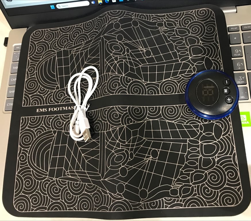 تستخدم وسادة استرخاء القدم هذه بوليمرات تدليك نقاط الوخز بالإبر والصدمات الكهربائية لتحفيز العضلات وتحسين الدورة الدموية وربما المساعدة في إدارة الوزن. ومن الممكن أيضًا أن يكون مخصصًا للاستخدام في معاهد التدليك