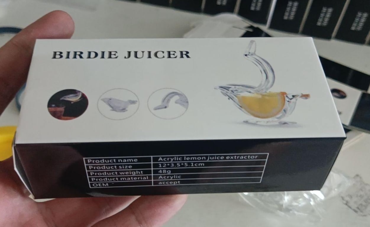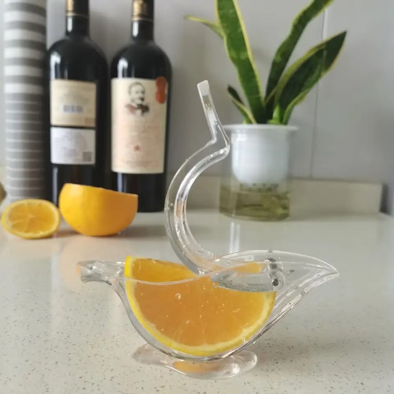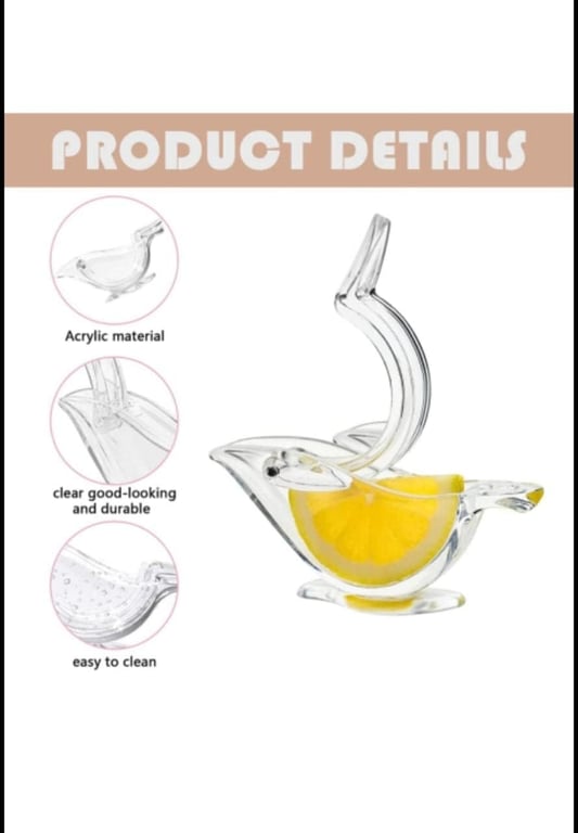 عصارة يدوية شفافة و محمولة لعصر عصير الليمون والبرتقال بتصميم مريح و أنيق على شكل طائر