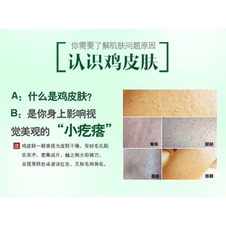 يؤدي إلى تحسين طويل المدى في مظهر جلد الدجاج. إنه يعمل على فتح المسام وتقليل حجم البصيلات الموسعة.