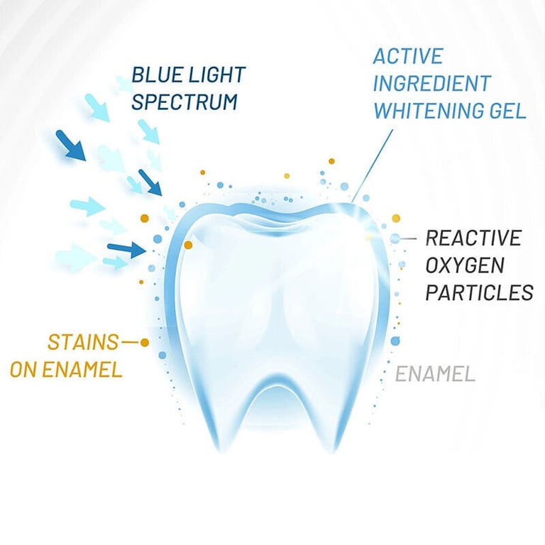جل التبييض لتفتيت وإزالة البقع الموجودة على سطح الأسنان من القهوة والنبيذ والصودا والشاي والتدخين