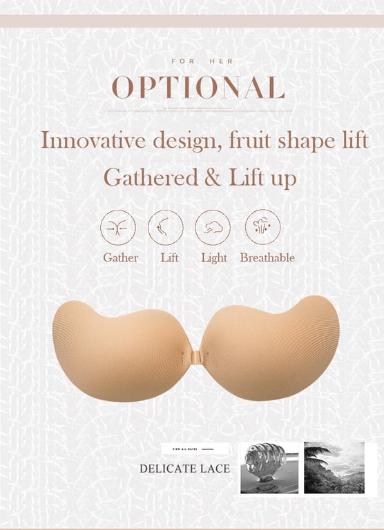 الملمس واللون: تأتي حمالة الصدر من السيليكون بملمس ناعم ومريح على الجلد، مما يجعلها مرغوبة لارتداءها لفترات طويلة. بالنسبة للون، فإنها عادة تكون شفافة أو لون الجلد الطبيعي لتمنح إحساسًا بالتطابق مع لون البشرة.